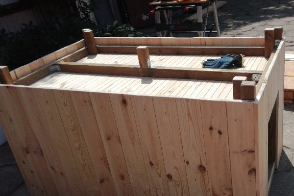 Dno ma dwie warstwy z płyty OSB i boazerii.